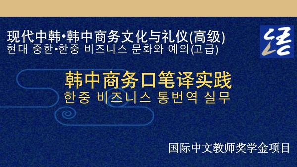 该项目主要目标生源国别为韩国,分为《现代中韩?韩中商务文化与礼仪(初阶)------中译韩商务口笔译实践》和《现代中韩?韩中商务文化与礼仪(高阶)------韩译中商务口笔译实践》两个阶段。第一阶段已于2022年9月结课,第二阶段于2023年2月正式结课。