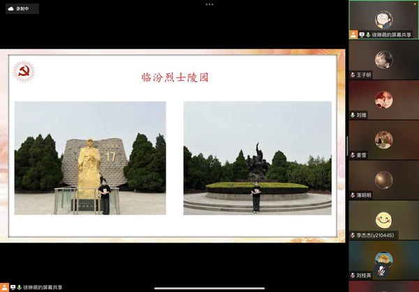 刘维带支部全体党员线上前往临汾烈士陵园,深切缅怀革命先烈。在陈列馆里大家一起瞻仰临汾攻坚战中的英雄风采,感悟英雄烈士大无畏的革命精神,并诵读《习近平法治思想学习纲要》片段。党员纷纷表示,要以革命先辈为榜样,感党恩、听党话、跟党走,传承红色基因,赓续红色血脉。