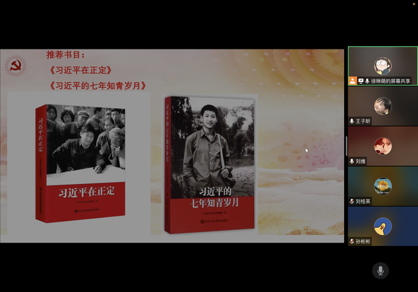 为巩固拓展党史学习教育成果,不断增强历史自觉,坚定历史自信,从红色历史中汲取奋进力量,英语口译学生党支部开展“云上读书颂辉煌”主题党日活动。支部推荐党员诵读天外经典书单中的红色书目《习近平在正定》和《习近平的七年知青岁月》,并举办读书分享会。在阅读与分享中,党员们结合自己的学习、工作和生活实际进行交流发言,大家表示,书中展现的理想信念和为民情怀不断激励着自己要深深扎根中国大地,在实干苦干中绽放青春华彩,不负青春韶华。