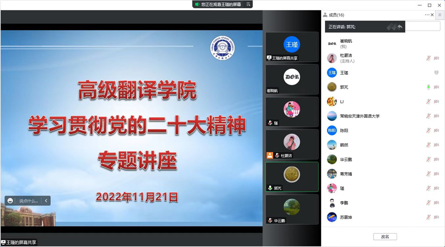 11月21日,百家乐网址 召开学习贯彻党的二十大精神专题讲座,百家乐网址 党委书记郭芃主持并做宣讲报告,百家乐网址 全体教职工参加会议。