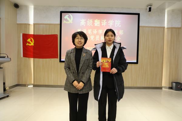 会上,党支部书记李鹏汇报了英语笔译学生党支部创建第二批全国高校“百个研究生样板党支部”的先进事迹。支部党员集体观看《津沽红色记忆》短片。 支部大会审议通过了预备党员曾瑜同志提出的党员转正申请。周红蕾对曾瑜同志光荣成为一名中共正式党员表示祝贺,并为其佩戴党员徽章、颁发政治生日贺卡。此外,周红蕾还结合自身多年教育工作经验,勉励同学们传承革命薪火、赓续红色血脉。
