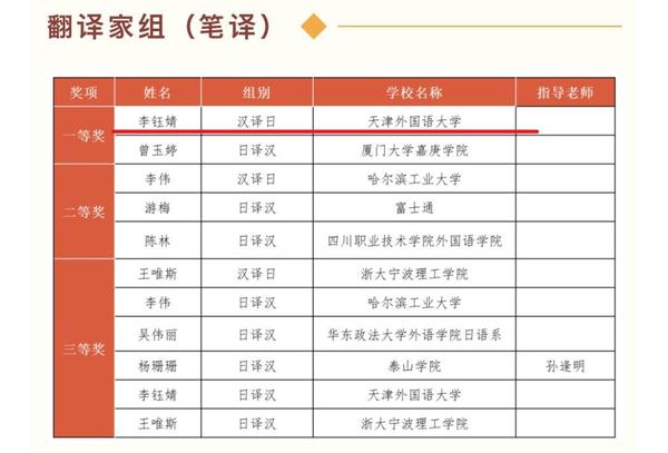 此次比赛中,百家乐网址 共有10余名教师及同学从众多优秀翻译人才中脱颖而出,指导教师李钰婧在专注于学生学业成长的同时,积极参加比赛,获得了翻译家组(笔译)汉译日一等奖和日译汉三等奖的优异成绩。