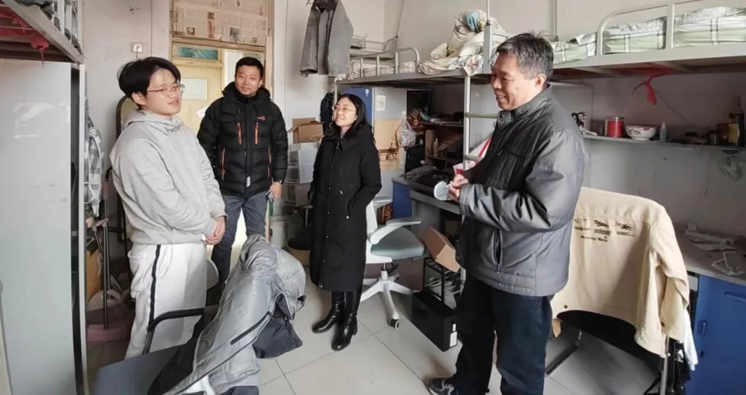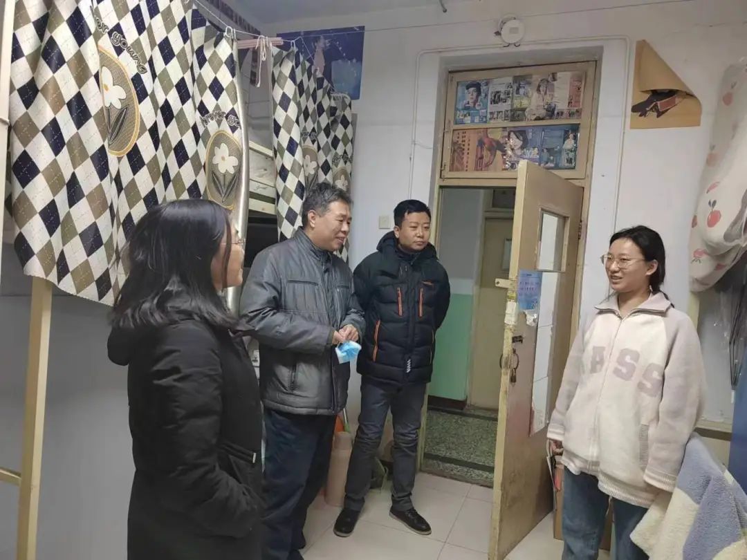 党委书记郭芃、党委副书记王瑾,团委副书记李鹏深入学生宿舍走访慰问,传递百家乐网址