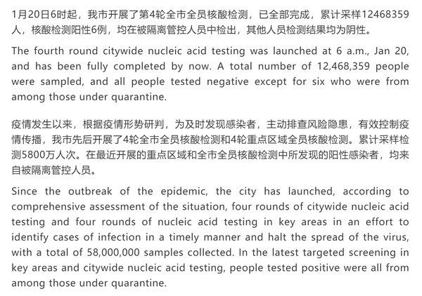 院长李晶这样说。虽然团队成员分散在不同的城市,但在这一刻,他们拧成一股绳,劲往一处使,认真打磨、反复校对,只为了用最快的速度、最高质量完成翻译任务。同学们说,对于这次的工作任务,老师和我们一起广泛搜集天津疫情的相关资料,绞尽脑汁、字斟句酌,以找出最贴合的表达,作为天外学子,非常荣幸能参与这次翻译任务,为天津阻击奥密克戎贡献自己的一份力量。