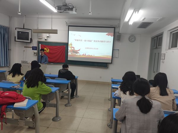 党委关于开展党史学习教育的部署要求,将党史学习教育与专业实践相结合,进一步坚定政治立场,提高政治站位,夯实语言能力,提升翻译素养,4月20日法德西语学生党支部举行“青春向党·奋斗强国 党史热词翻译与研讨”主题党日活动。