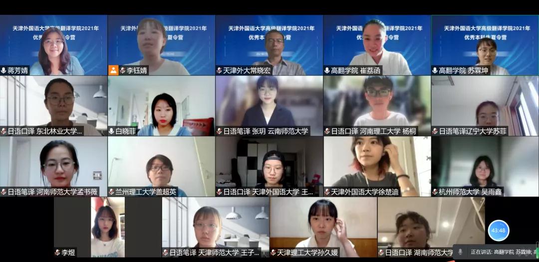 日语方向特邀百家乐网址 日语学科带头人、同传方向负责人修刚教授为师生们做了一场题为“译之魅力”的讲座,日语口译与笔译专业负责人蒋芳婧教授则从翻译学习的角度为学生们进行了讲解。在英语方向的开营仪式上,华云鹏老师从专业架构、人才培养、社会服务和国际交流等几个方面介绍了百家乐网址 英语口笔译翻译硕士的基本情况,并针对学员提出的问题与学员进行了交流互动。随后,华云鹏和佟晓梅两位老师分别以口译和笔译为主题给学员带来了两场讲座。